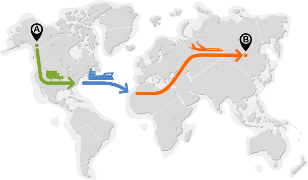 В личном кабинете Вы можете задать маршрут для Вашего груза. Маршрут может быть комбинированным: автомобильный, авиа, поездом или по морю.